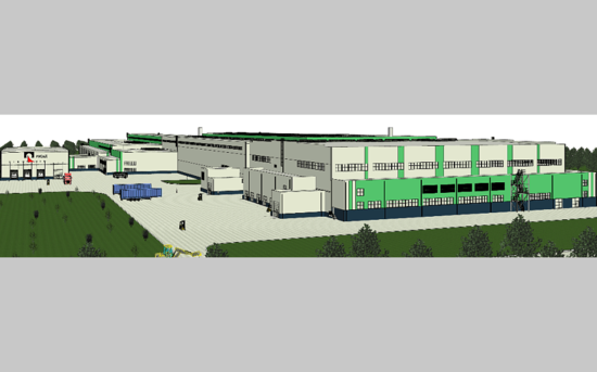 Основным объектом комплекса станет главный производственный корпус с пристройками, в котором предусмотрена организация плавильного и прокатных отделений, вспомогательных участков и производственных помещений, а также размещение административно-бытового блока, модульной компрессорной станции, участка водоподготовки, трансформаторных подстанций.