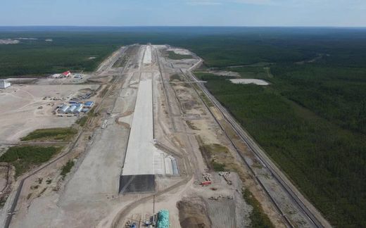 На объектах аэродромной инфраструктуры подрядной организацией выполняются работы по устройству искусственной взлетно-посадочной полосы (ВПП) параметрами 2 856×42 метра. В настоящий момент общая строительная готовность по объектам лётного поля составляет 68%. В объём работ включено строительство 18 мест стоянки воздушных судов, рулежных дорожек РД-E и РД-F, перрона, сооружений связи и светообеспечения (ССО), установка метеорологического оборудования. Кроме того, ведётся прокладка патрульной дороги протяженностью 8 км, монтаж периметрового ограждения (11,6 км) и строительство очистных сооружений ливневого стока. Реализация данных мероприятий в рамках нацпроекта направлена на повышение надёжности и безопасности авиаперевозок.