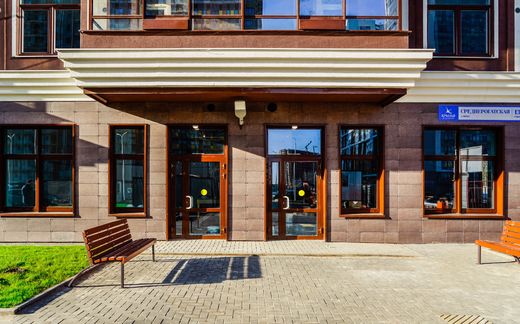 Общая площадь комплекса – чуть менее 20 тыс. кв. м, где разместилось 316 квартир (от студий до 4-комнатных), первый этаж отдан под коммерческие помещения.