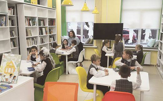 В закрытом дворе комплекса установлены детская площадка и спортивный комплекс, разбиты газоны и высажены деревья, установлен современный фонтан и выложена шахматная доска.