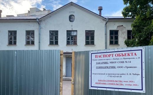 В рамках реализации в Ленинградской области программы по реновации школ начался комплексный ремонт здания по ул. Приморской, д. 24. Заказчиком является СОШ №14, подрядной организацией выступает ООО «Троянда».