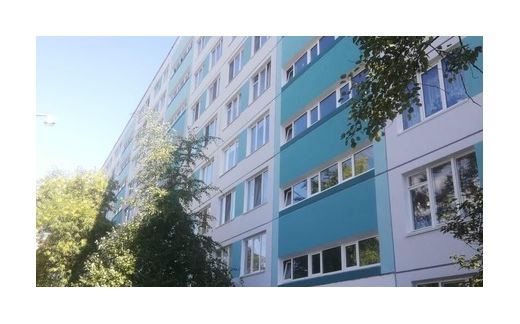 С Комитетом по градостроительству и архитектуре согласованы различные цвета для окраски – серо-голубой, фисташковый, оранжевый, красный. В результате стандартные стены панели приобретают новый вид. Площадь таких фасадов значительная и ремонт даже одного здания в квартале меняет весь облик застройки.
