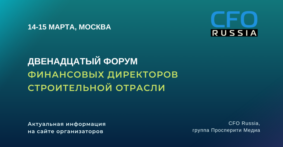 14-15 марта в Москве состоится Двенадцатый форум финансовых директоров строительной отрасли, организованный группой «Просперити Медиа» и порталом CFO-Russia.ru.