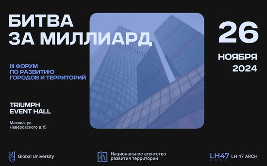 26 ноября в Москве пройдет III форум по развитию городов и территорий «Битва за миллиард». Мероприятие пройдёт в интерактивном формате и будет разделено на две части: дневная деловая программа и вечернее бизнес-шоу «Битва за миллиард».