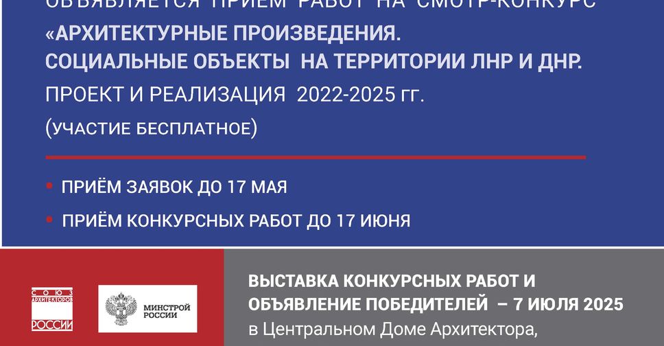 Открыт прием заявок на участие в смотре-конкурсе «Архитектурные произведения. Социальные объекты на территории ЛНР и ДНР. Проект и Реализация 2022 – 2025 гг.»