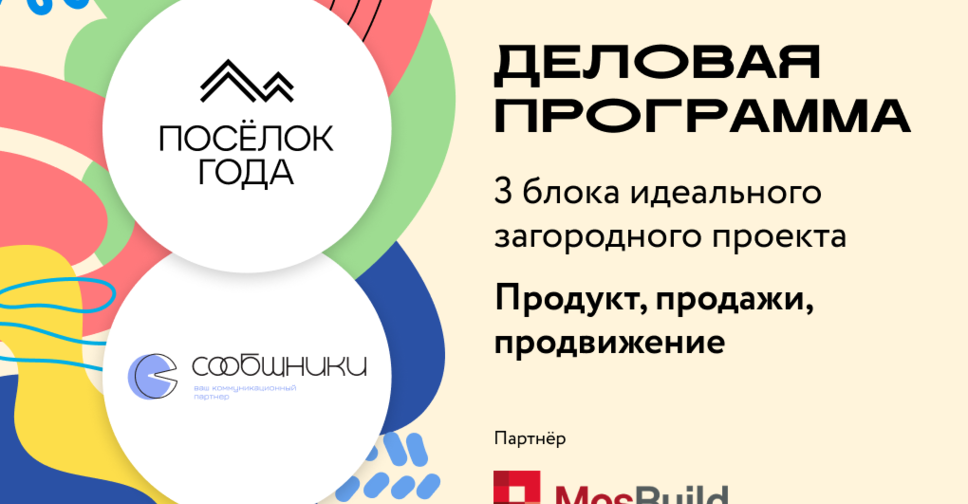 26 августа – деловая программа «3 блока идеального загородного проекта: продукт, продажи, продвижение», организованная Оргкомитетом премии «Посёлок года» и командой «Сообщники» при поддержке MosBuild.
